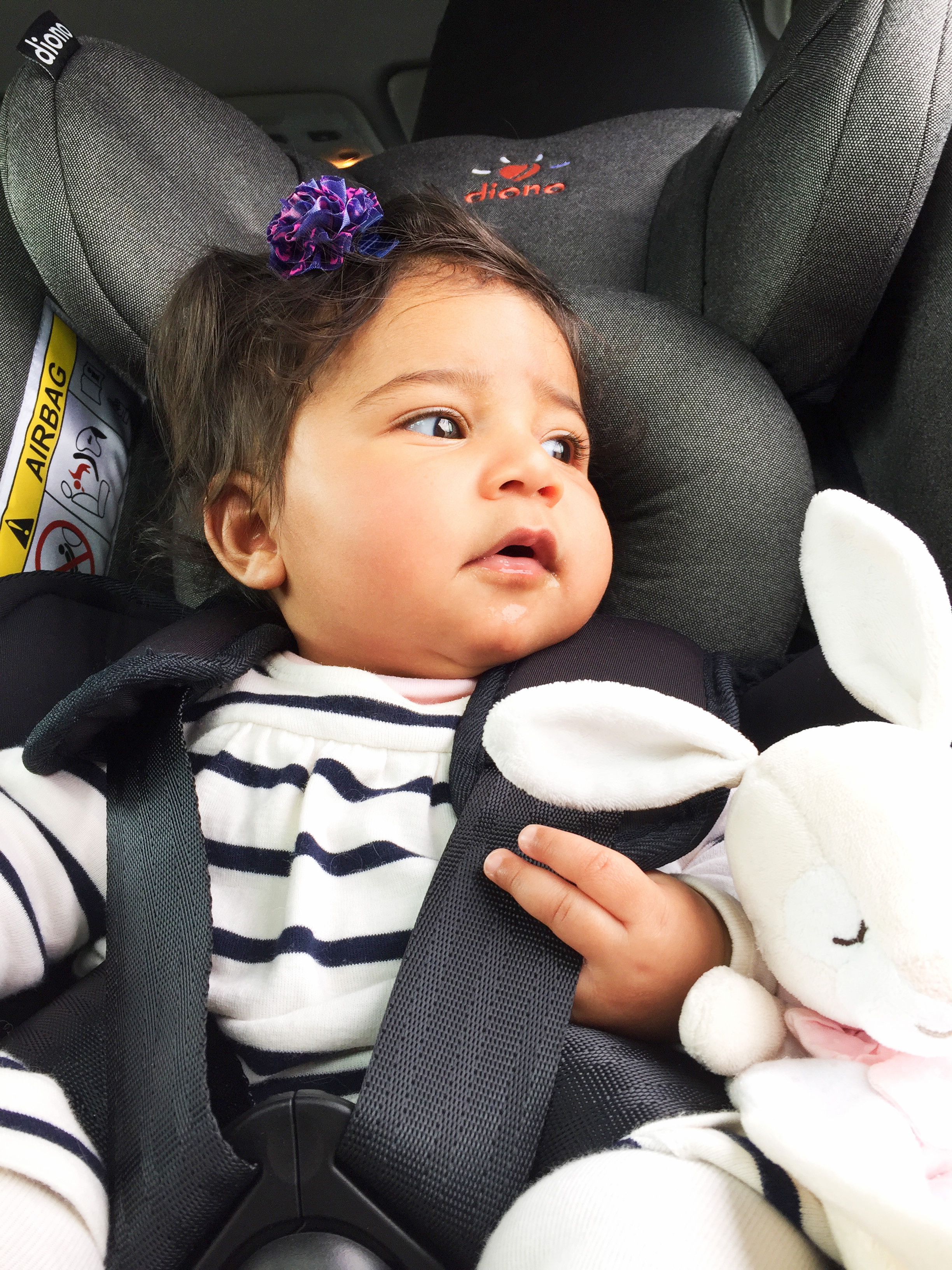 As a first time mum I’ve tried to plan everything in advance but I’m learning what my baby needs along the journey. Does it sound familiar? When we are here in Italy I drive a lot (unlike in London where we don’t have a car), as the public transportation is basically not an option. The first time I came over from London I honestly didn’t think about bringing a car seat, so my parents found an old one used by my cousin. What we didn’t realise was that all car seats have an expiry date, and that one was well expired! Does that count as bad parenting? Probably. Thankfully I’m a blogger! And luckily the brand Diono asked me to test their ultimate car seat: the Diono Radian 5, and Daphne is now travelling safe and comfortable! She’s such a tiny baby and seeing her in that big and fancy car seat makes me feel emotional. I know my hormones must be going wild these days, but Daphne is four months old now and she will use the car seat for the next seven years. She will literally grow in it!